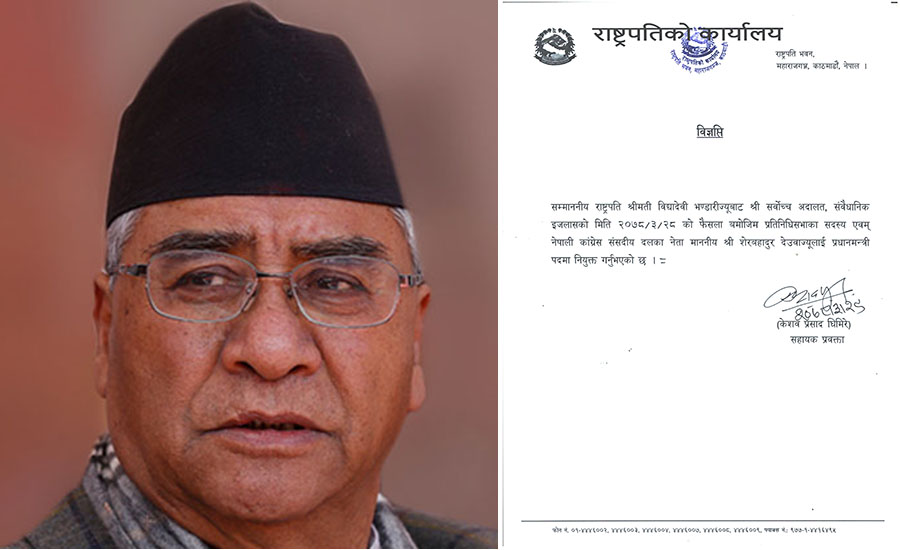 देउवाले आज प्रधानमन्त्रीको सपथ लिनुहुदै